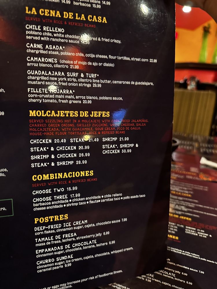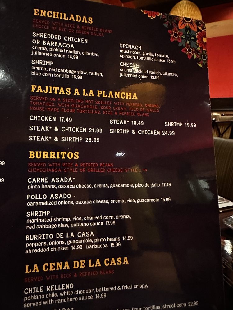 barbacoa enchilada, chicken enchilada, chile relleno, cheese enchilada, shrimp taco, flauta, carnitas taco, pollo asado taco
